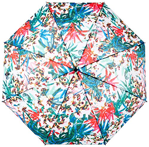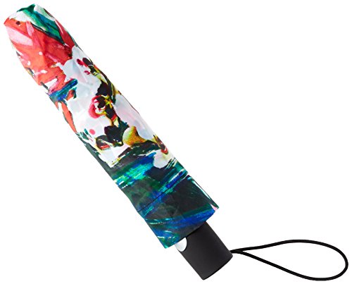 Details: Available in Nicole Miller's fashion prints, this compact manual open super mini umbrella will keep you fashionable and dry on any rainy day. The compact size is perfect to keep stored in your backpack, purse, or messenger bag. When opened, this umbrella has a generous 42-inch arc. The 8-rib frame structure will withstand winds up to 80 mph and will out-perform the elements. The rubber spray finish handle will provide a comfortable grip as you stay covered and protected.