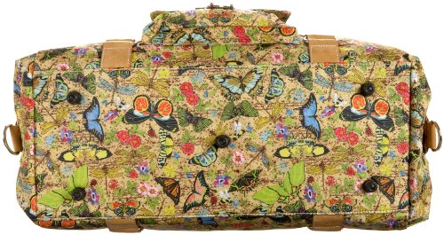 Details: 20901 Features: -Double shoulder strap. -Top zippered closure. -Accented with adorable dragonfly and butterfly enamel zipper pulls. Exterior Color: -Yellow. Exterior Material: -Nylon. Lining Material: -Polyester. Dimensions: Overall Height - Top to Bottom: -12". Overall Width - Side to Side: -17". Overall Depth - Front to Back: -7.5". Overall Product Weight: -2 lbs.