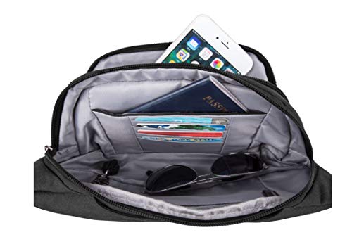 - TRAVEL HANDS AND WORRY-FREE WITH THE METRO WAIST PACK. The main locking zippered compartment features a zippered wall pocket, a tethered key clip with LED light, 4 RFID protected card slots, a RFID protected Passport pocket plus has ample room for additional items. The two front zippered compartments; one locks for additional security allow you to keep your items organized and the rear slash pocket keeps your smartphone easily accessible.
