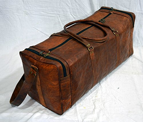 Details: This is classically designed, authentically styled, vintage look, hand crafted genuine long-lasting goat leather duffele, gym bag. The inner lining is made from sturdy durable canvas. Since it is being handmade, each bag is unique! Each bag is individually crafted. The more is used, the softer, flexible and durable it becomes. What is more important - looks better with age, regular use as the leather softens and deepens in color. Every bag is double stitched and trimmed to ensure durability, strength and the ability to withstand the test of time