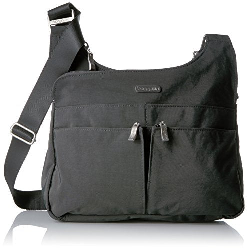 Details: Zipped compartments that face different directions make organization easy. This cross body bagg widens at the bottom, yielding surprising capacity. Exterior pockets hold newer cell phones.
