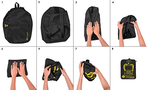 Details: Stay practical and be prepared for any occasion with the Biaggi PakSak Packable Backpack! Whether you are taking this bag hiking, to school, or on the plane, the PakSak Backpack is durable and comfortable. Use this versatile backpack on the go, hiking, on the beach or as your everyday bag! Sporting spacious inner, outer, and side pockets, this bag will fit all of your daily essentials. It even includes a travel sleeve for an easy hook on your suitcase for effortless traveling. The Biaggi PakSak Packable Backpack has a unique foldable design that lets you save room when storing or can be easily packed into your suitcase! The backpack is an ideal size and weight for everyday use with dimensions measuring at 17" x 14" x 6" and folded down dimensions of 11.5" x 8" x 1" and weighing less than 1 lb. The PakSak Packable Backpack is protected by a 2 year warranty so you can be confident in your purchase.