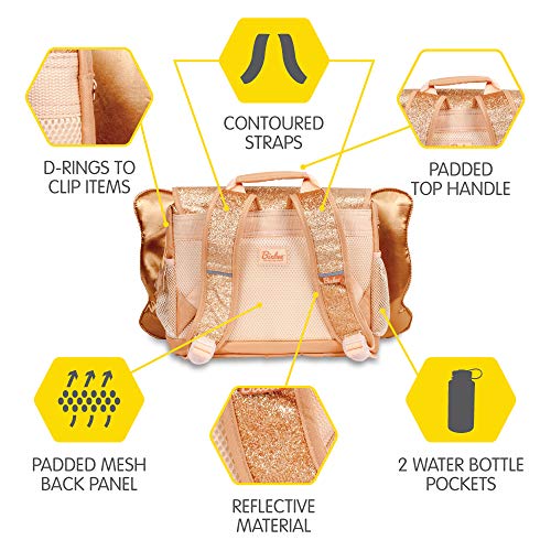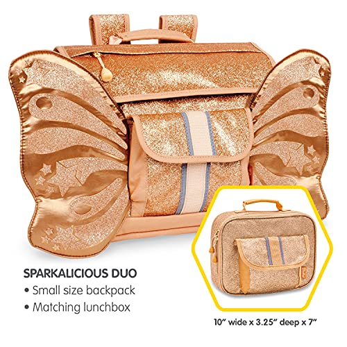 - EASY-TO-GRAB DURABLE ZIPPERS are perfect for tiny hands. The purple sparkly backpack has pink accents and unique butterfly wings! Detailed with reflective material for better visibility in low light, our Sparkalicious Purple Butterflyer backpack combines creative design with unbeatable function.