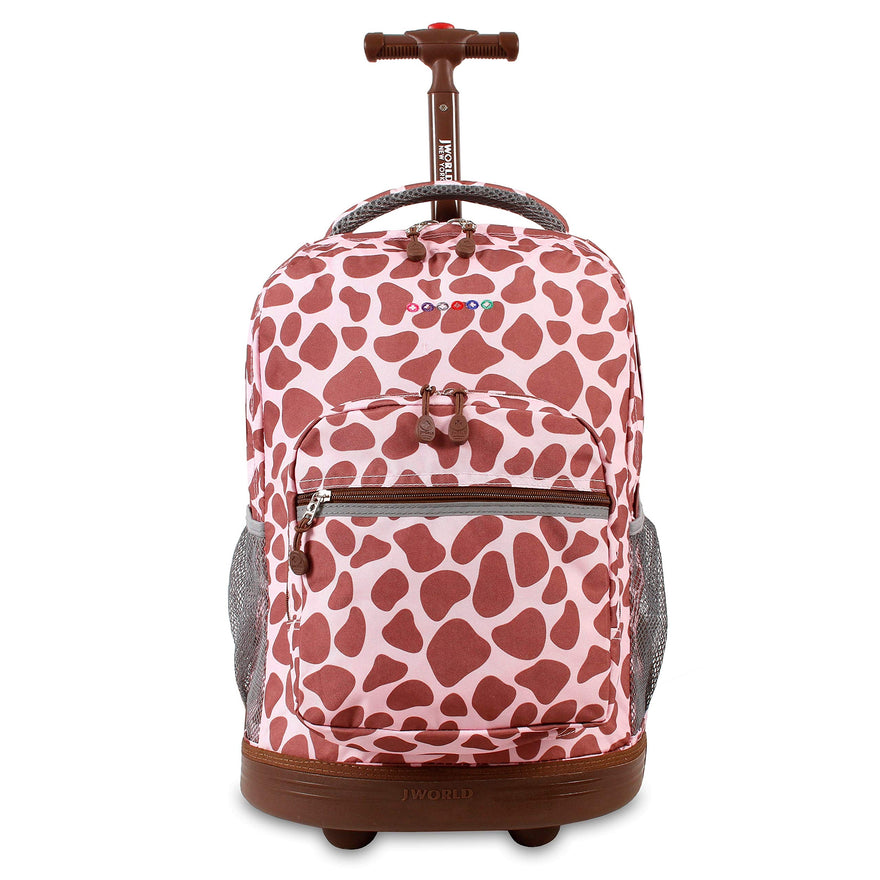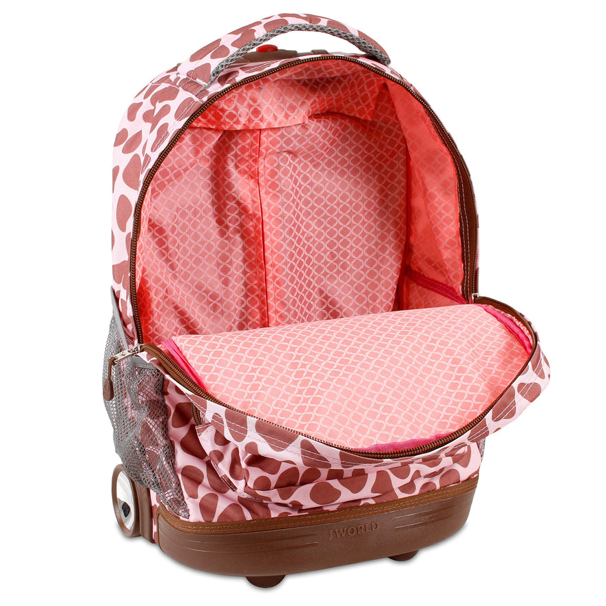 - J World New York Sunrise 18-inch Rolling Backpack - Pink Zulu Designer Print Polyester Checkpoint-friendly Adjustable Strap Lined Water Resistant