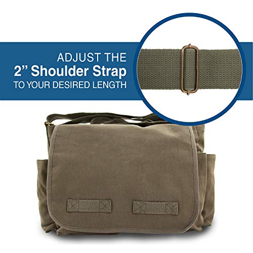- INNOVATIVE DESIGN FEATURES: Comfortable, 2" inch wide, adjustable shoulder strap designed for comfort during long wear promising not to weigh you down! Top flap with Velcro closure keep your valuables safe and secure while you're on the go. Bag measures 15" x 11" x 6"