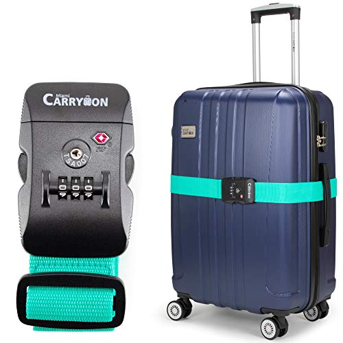 Miami CarryOn Adjustable Luggage Strap with a Built-in TSA Combination Lock (Light Blue)