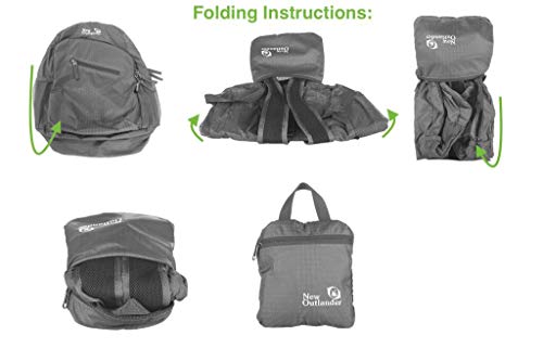 Details: About Outlander Packable Backpack With a stylish look, this packable go-anywhere pack is for super-minimalists who make every gram count. Ultra-light. Ultra-durable. Ultra-awesome. The backpack is perfect for day-to-day use or occasional travel. Adjustable breathable straps make it easy and comfortable to carry for all day use. COMPACT. Folds into zippered inner pocket to fit anywhere. Unfolds from pocket to backpack. Must have on every trip. MULTI COMPARTMENTS. Features a classic shape with several pockets for storage and organization. This backpack has a roomy main compartment, two front zipper pockets to hold small accessories, one internal security zippered pocket for valuable items and two side pockets for water bottle or umbrella. LIGHTWEIGHT(0.46 Pounds/0.5 Pounds) and ROOMY(20 Liters/33 Liters). A true space saver. Stuff the bag into its own pocket for storage---no extra fees, and unzip it when you reach your destination. Avoid overweight charges, simply unfold from your luggage and use it as a carry on for your excess baggage. DURABLE. The backpack is made from highly rip and water resistant nylon fabric, provide strengthen and long-lasting performance with minimal weight. Stress points are reinforced with bar tacking for increased longevity. Durable 2-way Abrasion Resistant SBS Metal Zipper across the backpack. Dimensions: 20L: Unfold: 16.92x10.63x7.08 inches, Fold: 6.29x5.90x1.97 inches Dimensions: 33L: Unfold: 19x13x8.2 inches, Fold: 6.29x5.90x2 inches. Warranty: Our Promise-Lifetime Warranty-Exchange, return, whatever it takes. Ultra-light. Ultra-durable. Ultra-awesome. The backpack is perfect for day-to-day use or occasional travel, and great gift for everyone.