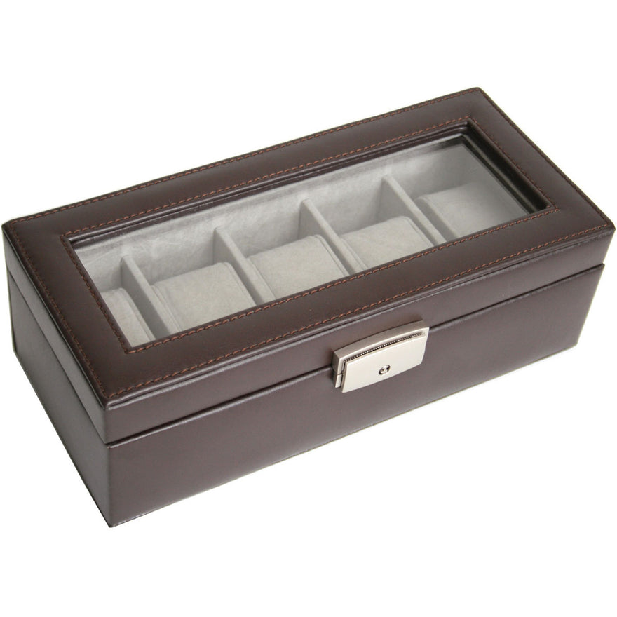 - Royce Leather 5 Slot Watch Box Display Case in Genuine Leather
