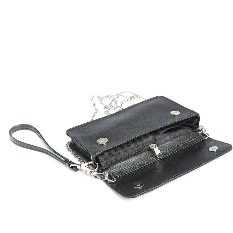 • Leather wristlet strap can easily transform this cross-body bag to a wristlet wallet