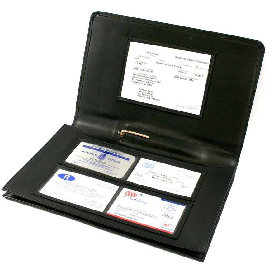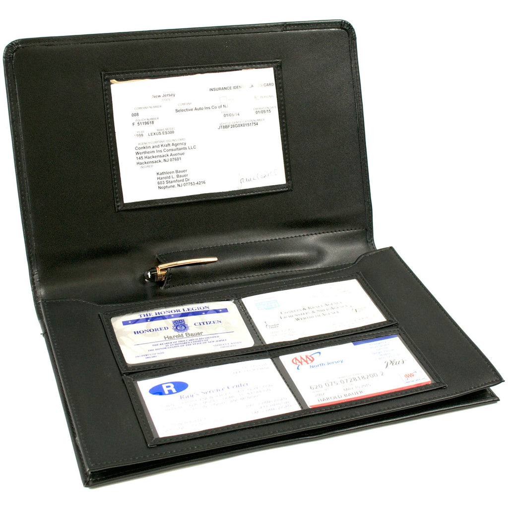 - Leather trimmed clear pocket on top to hold your Insurance card
