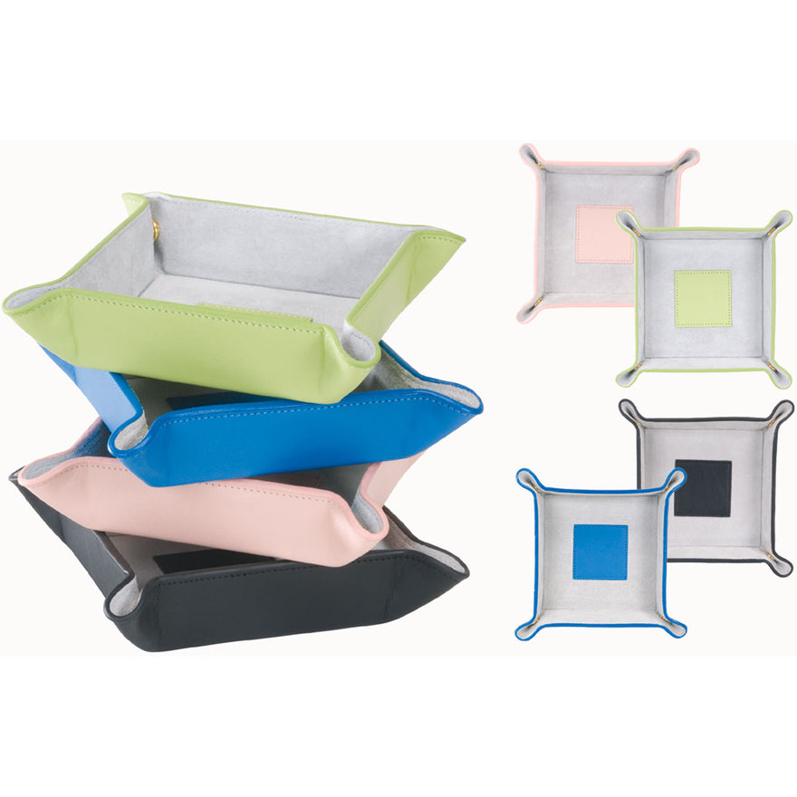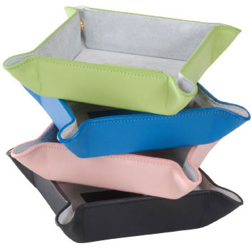 Hold your jewelry, coins, and/or key all in one area in the Royce Leather Luxury Suede Lined Catchall Valet Tray. It's perfect for avid traveler. This valet packs flat snaps together to form an attractive leather tray.