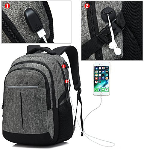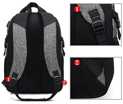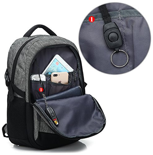 - Large main compartment. Two external zipper closure pockets. Key ring. USB charging and headphone holes.