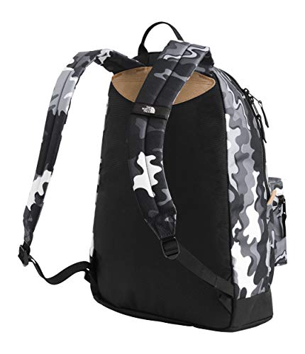 - LED light attachment loop. TNF® logo patch. Webbing grab handle. Padded back panel and shoulder straps. Volume: 25L 600D polyester body, 1200D polyester reinforcement. Imported. Measurements: Bottom Width: 15 in Middle Width: 12 in Top Width: 8 1⁄2 in Depth: 6 in Height: 17 in Strap Length: 32 in Strap Drop: 15 in Handle Length: 7 1⁄2 in Handle Drop: 3 1⁄2 in Weight: 13 oz
