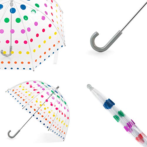Details: Put a smile on your little one's face with the totes kid's clear bubble umbrella. This large dome-shaped canopy is perfect protection from the elements, and the easy-grip curved plastic handle makes it a snap for small hands to open and close on their own. Plus, the clear canopy ensures your child can always see through while walking, avoiding any potential run-ins with others on the way to and from school.