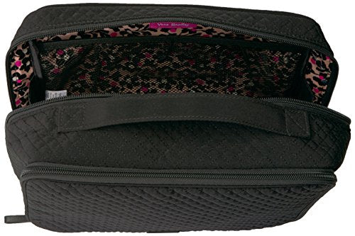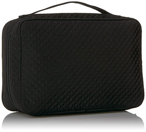 Vera Bradley has cleverly crafted a cosmetics case that adds a colorful touch to your vanity. The Iconic Large Blush and Brush Case is the fashionable solution for storing your everyday beauty essentials – measuring 7 inches high, 4.25 inches wide, and 10.5 inches in diameter with a 1.5 inch handle drop. The Iconic Large Blush and Brush Case is perfect for keeping all your beauty essentials clean and organized. Laminated interior cotton allows for easy cleaning even in the messiest of situations. The dual sided case offers organization at its finest. On the back side, the spacious main compartment is perfectly sized for storing full size cosmetics and bottles with 4 added mesh slip pockets for storing smaller products and palettes. On the front side of the case, store up to 9 brushes with built in brush-holder slips and store sponges or small tools in the clear zip pocket.* Stylish and functional, this bag is a beauty lover’s dream. Add a pop of color to your vanity or travel the world – either way, your beauty essentials are secure and organized. When quality material meets precise craftsmanship, you get a bag made to last through all of life’s journeys. Care: Machine wash cold, only non-chlorine bleach if needed; line dry; cool iron if needed *Bag only, brushes and beauty items not included.
