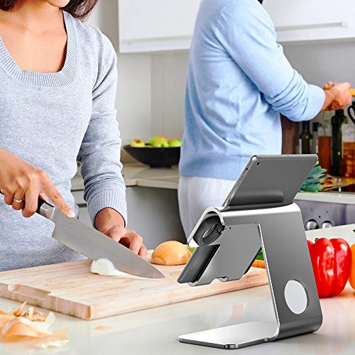 - 【PERFECT ANGLE 】: Tbalet stand perfect for desk or table to watch movies,read etc (both horizontal & vertical).sync charging your phone 8/8 PLUS/X or tablets.Angled Support for Facetime
