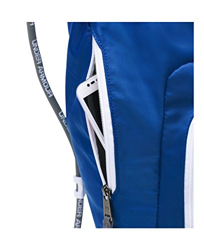 Details: Side valuables pocket lined with soft tricot material . Easily adjustable single cording. Custom UA sternum clip. Front pockets for extra storage & organization . D-Ring on front panel for additional attachment point. Dimensions: 19" x 15" x 2". Volume: 1500 Cubic In. / 25 L.