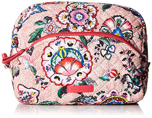 Details: Vera Bradley has cleverly crafted a cosmetics case that adds a colorful touch to your vanity. The Iconic Large Cosmetic case is the fashionable solution for storing your everyday beauty essentials – measuring 7.25 inches high, 10 inches wide, and 4.25 inches in diameter. The Iconic Large Cosmetic case is perfect for keeping all your beauty essentials clean and organized. PVC lined interior cotton allows for easy cleaning, even in the messiest of situations. The spacious main compartment is perfectly sized for storing larger cosmetics and bottles. The smaller front exterior pocket stores brushes and smaller tools, keeping them separate and clean.*Stylish and functional, this bag is a beauty lover’s dream. Add a pop of color to your vanity or travel the world – either way, your beauty essentials are secure and organized. When quality material meets precise craftsmanship, you get a bag made to last through all of life’s journeys. Care: Spot clean*Bag only, brushes and beauty items not included.