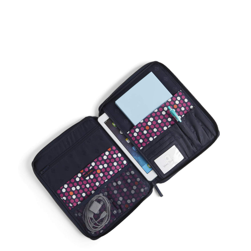 Details: Vera Bradley has cleverly crafted a case that adds a protective and colorful touch to your tablet. The Iconic Tablet Tamer Organizer is the fashionable solution for storing your tech and accessories – measuring 11.5 inches high, 9 inches wide and 1 inch diameter with a 1.5 inch handle drop. Stay organized and keep your tech essentials secure and at easy access between classes, in meetings, or while traveling. The padded main sleeve envelops your tablet providing it with soft protection, fitting tablets up to 10 inches. Additional storage gives everything from chargers, cords, passports, credit cards, and pens a secure and accessible place. The top handle with a 1.5 inch drop makes it easy to grab your organizer and go. Stylish and functional, this tablet case protects your tech while boasting a vibrant and fun Vera Bradley print. When quality material meets precise craftsmanship, you get a product made to last through all of life’s journeys. Care: Spot clean