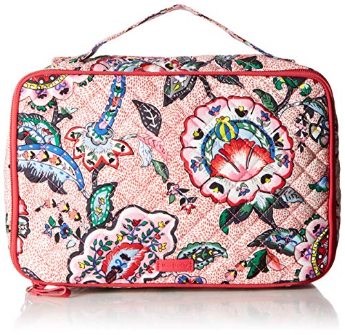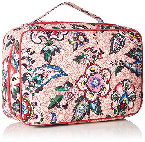 Details: Vera Bradley has cleverly crafted a cosmetics case that adds a colorful touch to your vanity. The iconic large blush and brush case is the fashionable solution for storing your everyday beauty essentials - measuring 7 inches high, 4.25 inches wide, and 10.5 inches in diameter With a 1.5 inch handle drop. The iconic large blush and brush case is perfect for keeping all your beauty essentials clean and organized. Laminated interior cotton allows for easy cleaning even in the messiest of situations. The dual sided case offers organization at its finest. On the back side, The spacious main compartment is perfectly sized for storing full size cosmetics and bottles with 4 Added mesh slip pockets for storing smaller products and palettes. On the front side of the Case, store up to 9 brushes with built-in brush-holder slips and store sponges or small tools in the clear zip pocket. Stylish and functional, this bag is a beauty lover's dream. Add a pop of color to your vanity or travel the world - either way, your beauty essentials are secure and organized. Celebrate that special someone in your life this holiday season with Vera Bradley's festive styles, fit for the chic and sophisticated woman who deserves nothing but the best this Christmas. When quality material meets precise craftsmanship, you get a bag made to last through all of life's journeys. Care: Spot clean bag only, brushes and beauty items Not included.