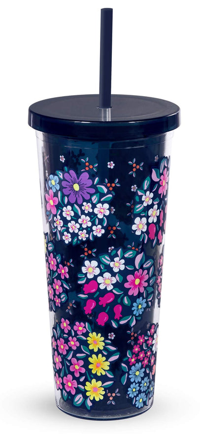 Take your favorite cold beverage to go in this 24 oz. travel cup with a flexible straw. This double wall tumbler with straw has a secure lid that helps prevent spills and a pretty pattern that helps prevent the mundane. This travel tumbler makes the perfect iced coffee, smoothie, or water cup. Featured in the multicolored Vera Bradley® print, Kaleidoscope.