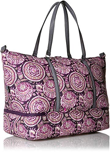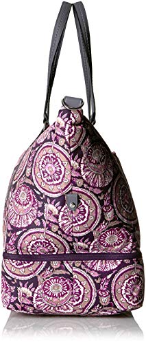 Details: Vera Bradley has thought of everything a great traveler needs with the midtown travel bag - the spacious, carryon compliant bag to fit everything you need for your next quick getaway. The midtown travel bag is the fashionable solution for storing your travel essentials and packing efficiently - measuring 16 inches high, 18.25 inches wide, and 10.25 inches in diameter. The interior of this spacious bag features two slips and one zip pocket, in addition to the bottom compartment for storing clothes, shoes and necessary toiletries while traveling. The exterior features a front slip pocket to conveniently stow your wallet, phone, boarding passes, reading material, and snacks to have at your fingertips for quick access while remaining soundly fastened for your flight. Crafted from sleek, water-repellent polyester, The midtown travel bag keeps you hands-free so there is plenty of room for adventure. With a 41 inch removable, adjustable strap and a 10.5 inch strap drop, you can grab the dual straps on the go, throw over your shoulder for hands-free attention, or utilize the trolley sleeve to attach it to your luggage handle so you can be mobile with multiple bags. Whether it's a weekend getaway or a girl's trip, Vera Bradley has designed this necessity for every traveler. Celebrate that special someone in your life this holiday season with Vera Bradley's festive styles, fit for the chic and sophisticated woman who deserves nothing but the best this Christmas. When quality material meets precise craftsmanship, you get a bag made to last through all of life's journeys. Care: Spot clean.