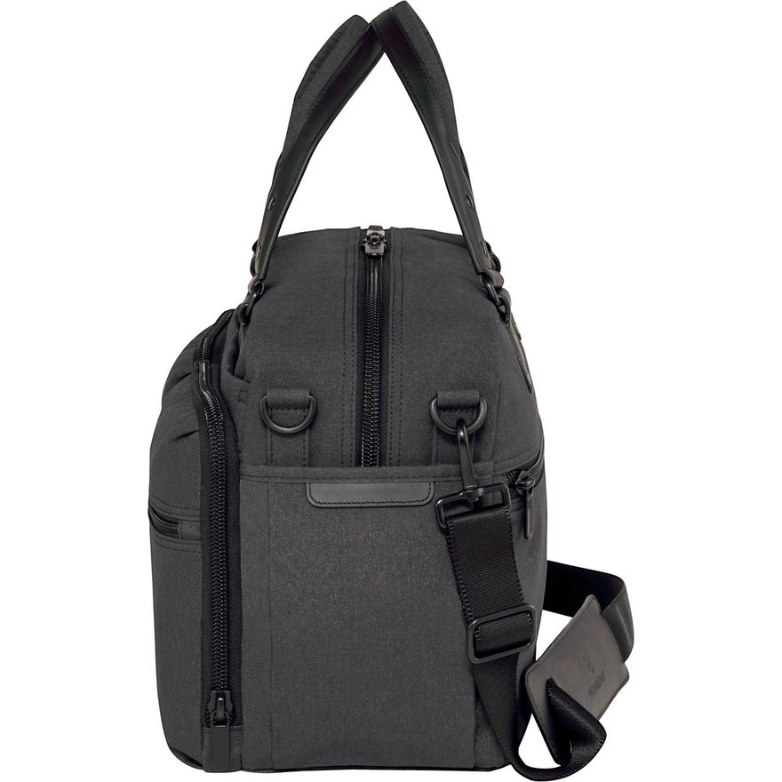 - Interior organization includes a spacious main compartment with two padded side pockets and a zippered multi-purpose pocket