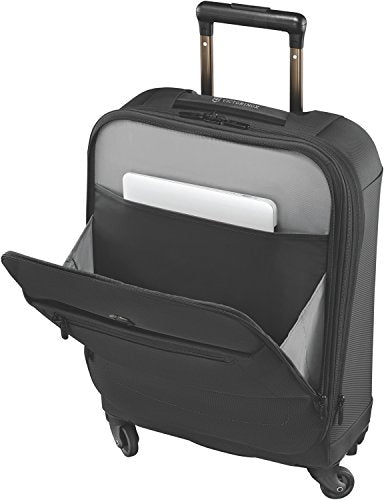 Details: Constructed with a lightweight, 100% pure polycarbonate frame and a durable nylon exterior fabric designed exclusively for Victorinox. Aircraft-grade, one-touch, dual-trolley aluminum handle system locks into three different positions - 94 cm (37 inch ), 99 cm (39 inch ) and 104 cm (41 inch ) - to accommodate travelers of various heights. Four premium, 50mm Hinomoto wheels ensure smooth roll across any surface and provide 360 Degree, zero weight-in-hand maneuverability. Spacious main packing area expands 3 cm (1.2 inch ) for additional packing capacity. Padded front u-shaped zippered compartment holds a 15.6 inch laptop. Two quick-access front pockets hold tickets and other essentials. Interior organization includes a large zippered mesh lid pocket and a zippered mesh hanging pocket containing dedicated storage for a Lifestyle Accessories 4.0 CheckSmart luggage tracking device (sold separately). X-shaped compression straps cover a greater surface area to keep folded items secure. Top retractable haul handle and bottom grab handle for easy carrying. Integrated ID tag for security and convenience. Lockable coil zippers provide superior burst strength on the main compartment and laptop compartment. Custom zipper pulls feature a thumb groove inspired by the Swiss Army Knife. Travel Sentry Approved combination lock easily secures belongings and allows U.S. airport security screeners to open the lock without destroying it and relock it after inspection. The Access Lock Combination Recovery Program allows you to register your lock combination on victorinox.com and recover it if it is ever forgotten. Covered by the Global 10-Year Limited Warranty .