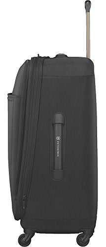 Details: Constructed with a lightweight, 100% pure polycarbonate frame and a durable nylon exterior fabric designed exclusively for Victorinox. Aircraft-grade, one-touch, dual-trolley aluminum handle system. Four premium, 50mm Hinomoto wheels ensure smooth roll across any surface and provide 360 Degree, zero weight-in-hand maneuverability. Spacious main packing area expands 3 cm (1.2 inch ) for additional packing capacity. Padded front u-shaped zippered compartment holds a 15.6 inch laptop. Two quick-access front pockets hold tickets and other essentials. Interior organization includes a large zippered mesh lid pocket and a zippered mesh hanging pocket containing dedicated storage for a Lifestyle Accessories 4.0 CheckSmart luggage tracking device (sold separately). X-shaped compression straps cover a greater surface area to keep folded items secure. Top retractable haul handle and bottom grab handle for easy carrying. Integrated ID tag for security and convenience. Lockable coil zippers provide superior burst strength on the main compartment and laptop compartment. Custom zipper pulls feature a thumb groove inspired by the Swiss Army Knife. Travel Sentry Approved combination lock easily secures belongings and allows U.S. airport security screeners to open the lock without destroying it and relock it after inspection. The Access Lock Combination Recovery Program allows you to register your lock combination on victorinox.com and recover it if it is ever forgotten. Covered by the Global 10-Year Limited Warranty .