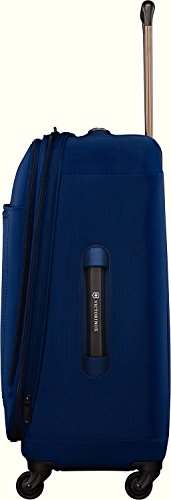 Details: Constructed with a lightweight, 100% pure polycarbonate frame and a durable nylon exterior fabric designed exclusively for Victorinox. Aircraft-grade, one-touch, dual-trolley aluminum handle system. Four premium, 50mm Hinomoto wheels ensure smooth roll across any surface and provide 360 Degree, zero weight-in-hand maneuverability. Spacious main packing area expands 3 cm (1.2 inch ) for additional packing capacity. Padded front u-shaped zippered compartment holds a 15.6 inch laptop. Two quick-access front pockets hold tickets and other essentials. Interior organization includes a large zippered mesh lid pocket and a zippered mesh hanging pocket containing dedicated storage for a Lifestyle Accessories 4.0 CheckSmart luggage tracking device (sold separately). X-shaped compression straps cover a greater surface area to keep folded items secure. Top retractable haul handle and bottom grab handle for easy carrying. Integrated ID tag for security and convenience. Lockable coil zippers provide superior burst strength on the main compartment and laptop compartment. Custom zipper pulls feature a thumb groove inspired by the Swiss Army Knife. Travel Sentry Approved combination lock easily secures belongings and allows U.S. airport security screeners to open the lock without destroying it and relock it after inspection. The Access Lock Combination Recovery Program allows you to register your lock combination on victorinox.com and recover it if it is ever forgotten. Covered by the Global 10-Year Limited Warranty .