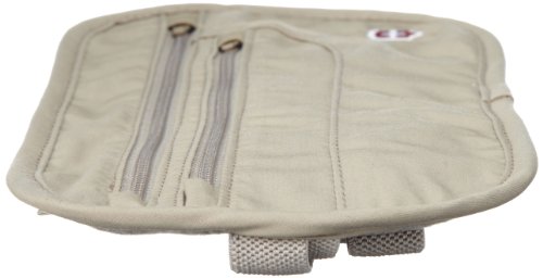 - Two large zippered compartments store tickets, passports, traveler's checks and most sizes of currency