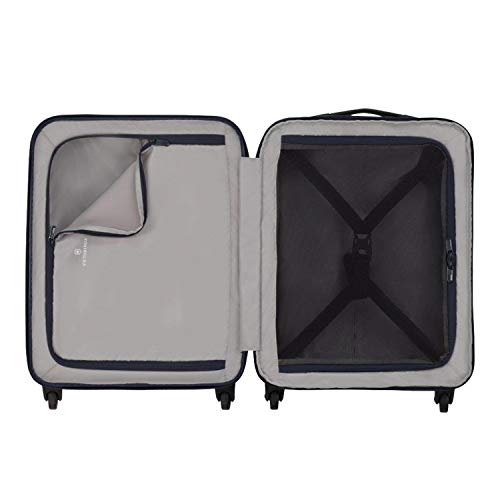 Details: This lightweight 100% pure polycarbonate global carry-on easily glides down airplane aisles and provides added capacity when needed courtesy of a zippered expansion system. On the interior zippered dividers create two spacious packing compartments while an expansion system provides additional packing capacity when needed. Comfort grip, one-touch dual trolley handle locks into three positions to accommodate travelers of various heights. Premium 55mm Hinomoto wheels ensure a smooth roll. Y-shaped compression straps keep folded items secure and help reduce wrinkles. Integrated Travel Sentry Approved lock allows TSA screener to open the lock without destroying it, and relock it after inspection. Access Lock Combination Recovery Program allows you to register your lock combination on victorinox.com and recover if ever forgotten. Top haul handle for easy grabbing. Global 10-Year Limited Warranty