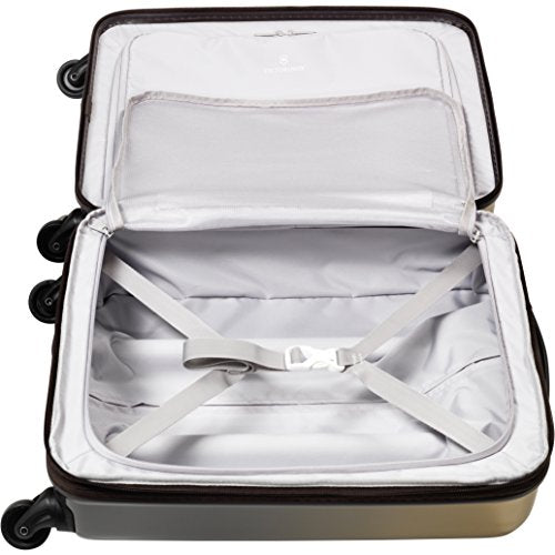 Details: This lightweight 100% pure polycarbonate global carry-on easily glides down airplane aisles and provides added capacity when needed courtesy of a zippered expansion system. On the interior zippered dividers create two spacious packing compartments while an expansion system provides additional packing capacity when needed. Comfort grip, one-touch dual trolley handle locks into three positions to accommodate travelers of various heights. Premium 55mm Hinomoto wheels ensure a smooth roll. Y-shaped compression straps keep folded items secure and help reduce wrinkles. Integrated Travel Sentry Approved lock allows TSA screener to open the lock without destroying it, and relock it after inspection. Access Lock Combination Recovery Program allows you to register your lock combination on victorinox.com and recover if ever forgotten. Top haul handle for easy grabbing. Global 10-Year Limited Warranty