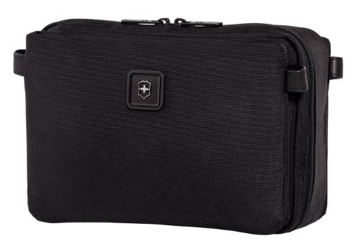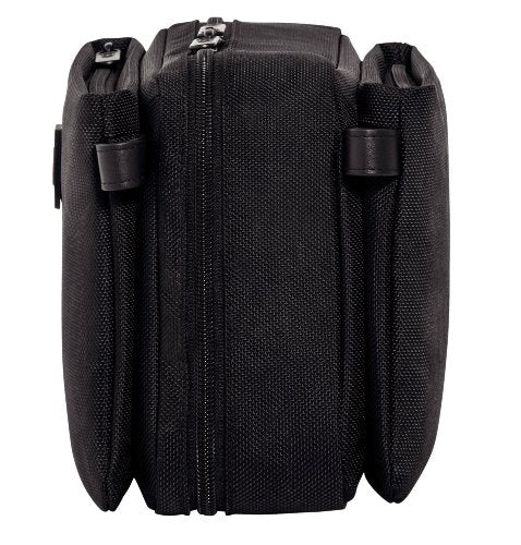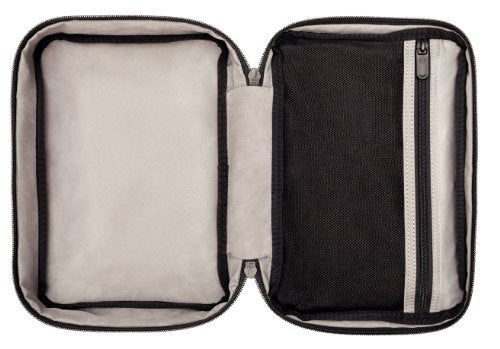 Details: Zippered, dual-end compartments for loose items. Main compartment features organizational pocket for full-size toiletries. Easy-to-clean, water-resistant inner lining