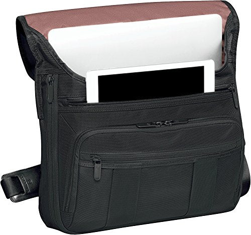 Details: Delivering function and versatility, this expandable laptop messenger contains ample organization to accommodate any professional need. Padded compartment holds up to a 14" laptop. Padded tablet / ereader pocket with premium twill lining. Features two zippered storage pockets. Front organizational panel contains two electronic device pockets, business card pockets and pen loops. Exterior organization includes two quick-access front pockets and a full-length rear zippered pocket that converts to a sleeve for sliding over the handle system of wheeled luggage. Expands 5 cm (2") for additional capacity. Removable, adjustable padded shoulder strap. Custom ykk zipper pulls feature a thumb groove inspired by the Swiss army knife. Premium twill lining in select interior pockets. Leather haul handles. Swiss tracker bag tracking program will reunite you with your bag anywhere in the world should it ever be lost - for free. Global lifetime plus limited warranty.