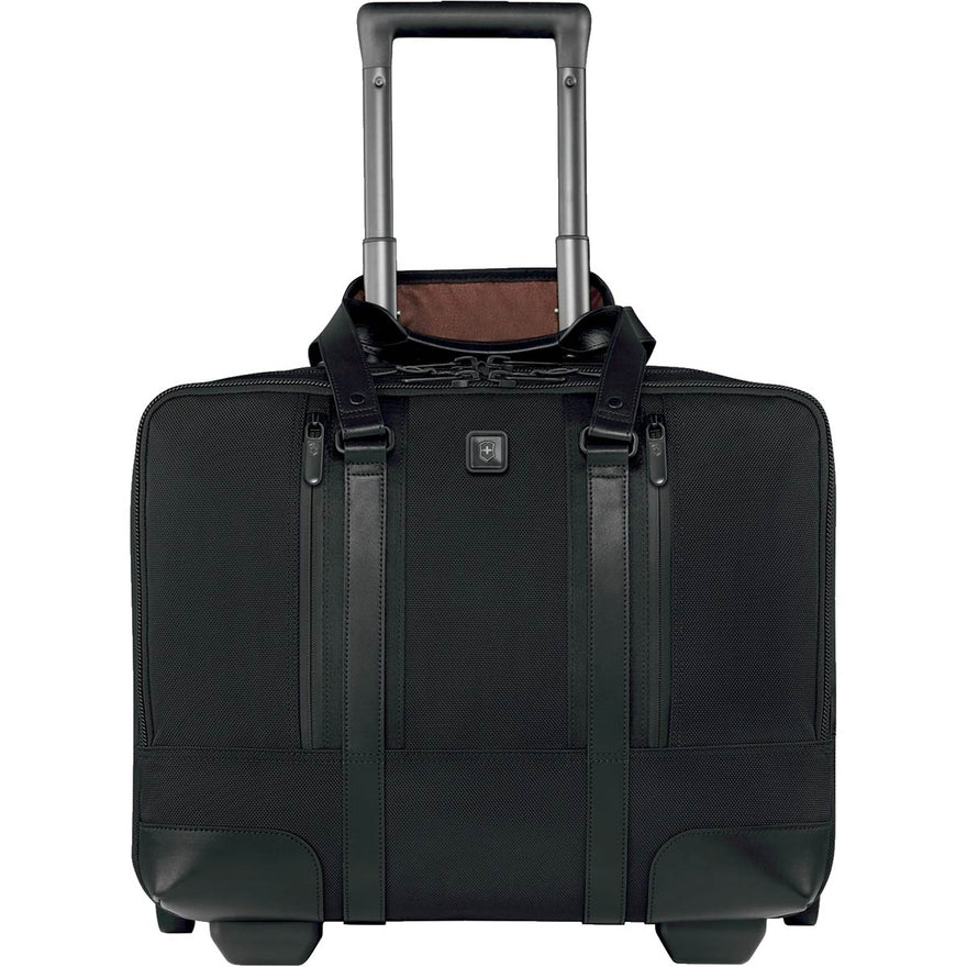 - Front organizational panel contains two full-length zippered pockets, electronic device pockets, business card pockets and pen loops