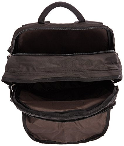 Details: Designed for the multi-tasker, this dual-compartment backpack contains both a padded laptop compartment and a portable device pocket. Padded rear laptop sleeve holds up to a 17 inch laptop. 10' padded portable electronic device pocket to protect and ipad, kindle, tablet or other ereader. Interior organization includes full-length zippered mesh pocket, dual storage pockets, pen slots and key fob. Exterior organization includes two hidden security pockets, a front slash pocket and multi-purpose stretch side pockets ideal for water bottle or umbrella. Compression-molded back panel and compression-molded adjustable shoulder straps for maximum comfort. Adjustable sternum strap and waist straps evenly distribute weight. Side and bottom compression straps cinch bag to stabilize heavy loads. Waist straps conveniently tuck behind back panel when not in use.