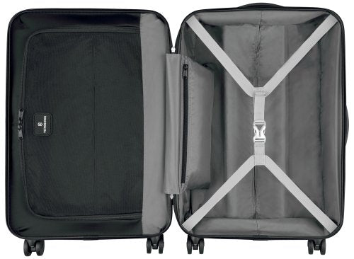 Details: The durability and maneuverability of this lightweight upright make it the perfect piece to bring on a longer trip. Comfort grip, one-touch, dual-trolley aluminum handle system locks into three different positions - 41 inch 104 centimeter, 39 inch 99 centimeter and 37 inch 94 centimeter - to accommodate travelers of various heights and adjusts when transitioning from pushing the bag on four wheels to pulling it on two wheels. Dual-caster wheels feature soft tread offering ideal traction for a smooth roll across any surface while also providing 360degree maneuverability and zero weight-in-hand. Break-resistant 100% pure bayer polycarbonate with stylish, scratch-resistant matte finish delivers superior strength for the highest level of performance. Corner guards and zipper bumpers provide added protection to areas of the case most prone to impact and abrasion. Zippered mesh divider wall stretches for easy packing. Y-shaped compression straps cover a greater surface area to keep folded items secure. Top haul handle for easy carrying. Integrated travel sentry approved lock allows us Tsa screeners to open the lock without destroying it, and relock it after inspection. Swiss tracker bag tracking program will reunite you with your bag anywhere in the world should it ever be lost - for free. The access lock combination recovery program allows you to register your lock combination on victorinox.com and recover it if it is ever forgotten. Removable id tag for security and convenience.