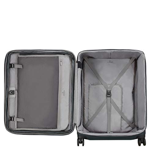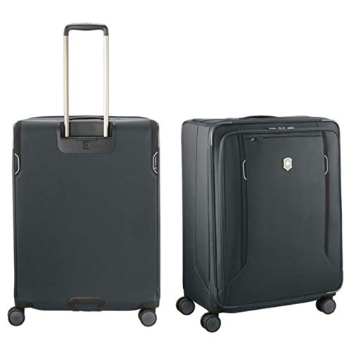 Details: The Werks Traveler 6.0 Large Softside Case features a number of smart functions and elevated details while offering maximum packing capacity and durability. The exterior features: abrasion and water resistant ballistic nylon, Swiss engineered 3-stop trolley system, 60mm dual caster Hinomoto wheels with Lisof silent tires for a smooth and quiet roll, top and side soft-gripretractable haul handles, self healing YKK RC coil-zippers, integrated flush mounted TSA combination lock, a large U-shaped front pocket and two small exterior pockets for easy-access packing, a hidden ID tray in the handle bezel that slides up to reveal a pen and SIM card replacement tool, expands 4cm for extra packing capacity. The interior features: the Pack More System which includes a removable, expandable packing cube with a padded 15.4" laptop compartment. The Pack More cube provides organization and creates a flat packing surface for wrinkle-free transport of clothing. Also included on the interior are X-shaped compression straps to keep belongings in place during transit, a removable suiter for packing hanging clothing and two large mesh side pockets.10.71 lb / 4.86 kg. 6346 cu in / 104 L [Expands to 7262 cu in / 119 L]. 1 + 10 Years Warranty.