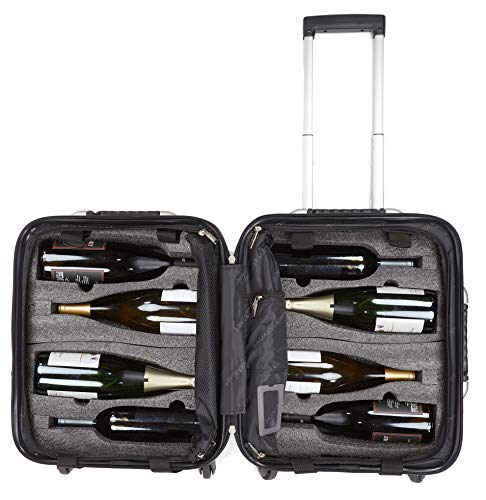 Details: Travel in confidence with the newest version of the VinGardeValise 03, a must-have travel accessory that provides a safe journey for your favorite wine, beer & spirits. This flexible design features removable inserts, making packing easy; carry up to 8 (750 ml) bottles, personal belongings, or both! The VinGardeValise 03 Petite features a 100% proprietary compound material shell with closed-cell foam. The new asymmetrical Hinomoto wheels make the VinGardeValise easy for you to maneuver, while a TSA-compliant lock is flush mounted and integrated into the suitcase. The product comes with a 10-Year Manufacturer's Limited replacement coverage on any defects in materials and workmanship. Additional inserts, sold separately, offer temperature controlling wine chiller sheets and magnum size capability.
