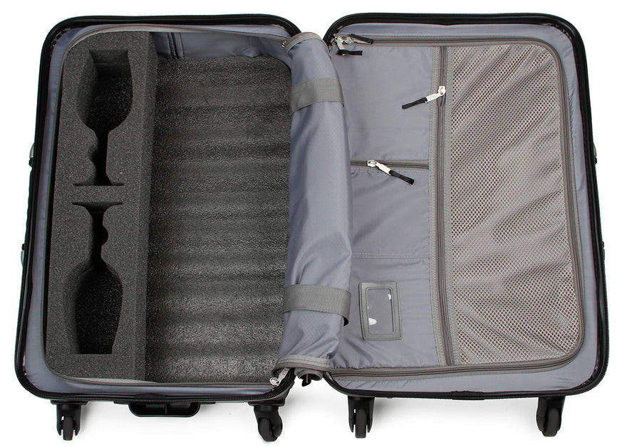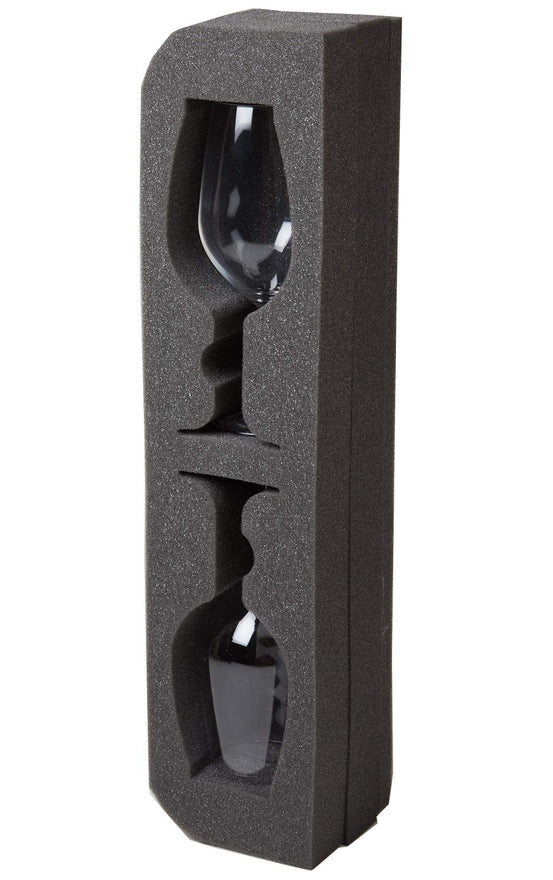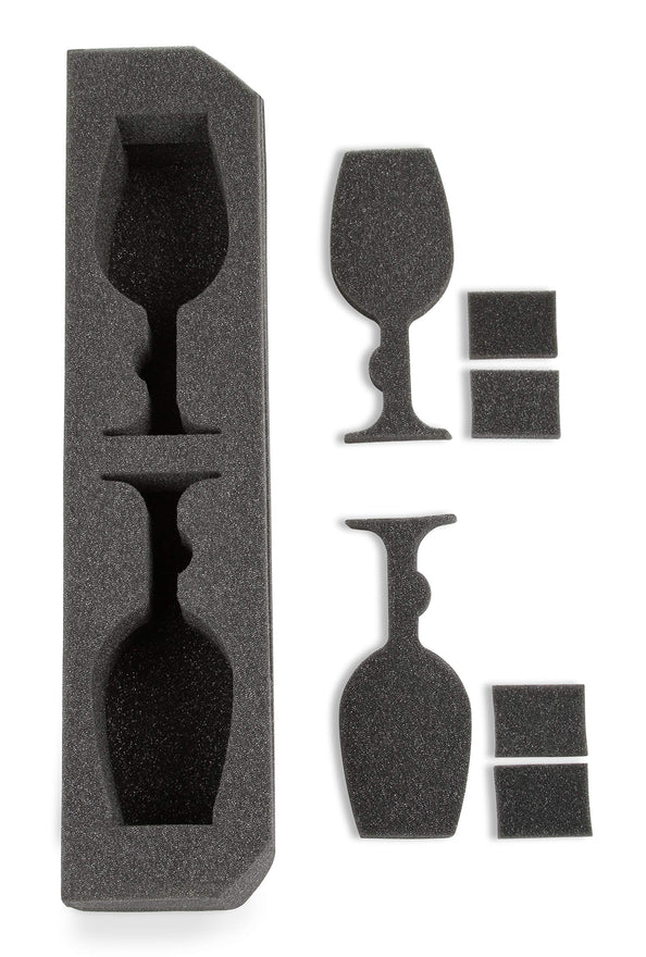 Details: What's wine without a glass? Cheers to the wine glass insert, giving wine connoisseurs the option to travel with two large Bordeaux-shaped glasses in the VinGardeValise.This insert replaces one 2-bottle insert in only the Grande 12-Bottle VinGardeValise. To use: It is recommended that you place wine glasses into the insert prior to placing the insert in the suitcase. Gently press the bowl of the glass into the cavity first, followed by the stem. Foam wine glass covers are included.
