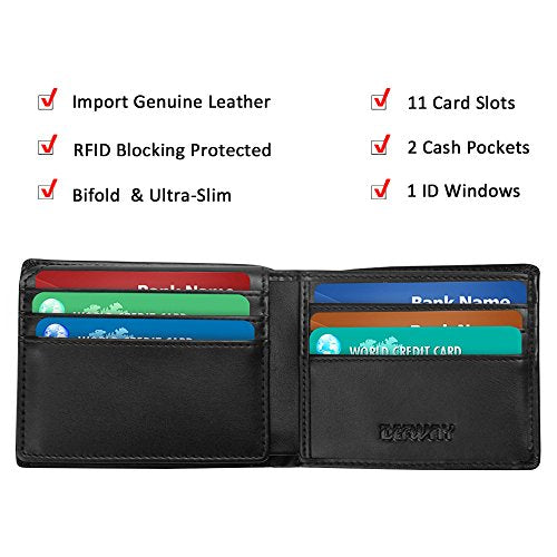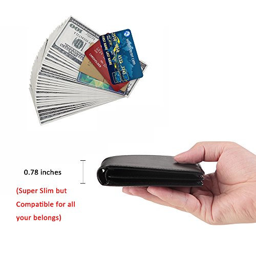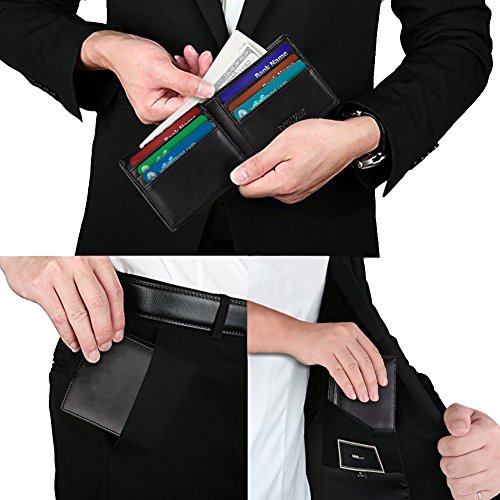 - TOP GENUINE LEATHER MATERIAL: This RFID genuine leather wallet is crafted with top grained genuine leather, touch, soft, and smooth texture. It looks great, offers a slim, lightweight design(ONLY , and goes great with jeans or a suit. On top of that, the dimensions of the wallet allow it to slip in and out of any pant pocket with ease.