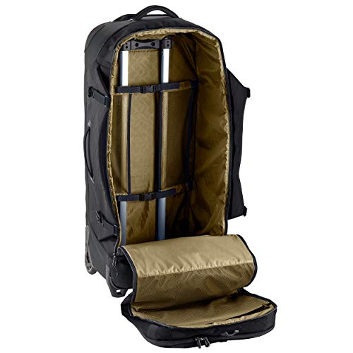 Details: Eagle Creek Gear Warrior Rolling Duffel Bag. This luggage offers ample room with 95 liters of packing space and organized storage. Featuring water resistant material, versatile carrying straps and the option to transport on two wheels, this duffel is ready to help you explore the world.