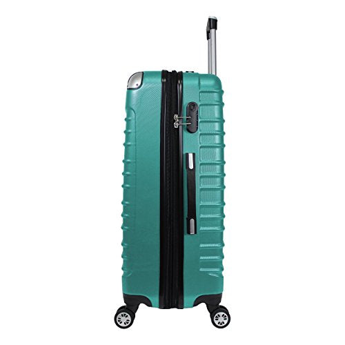 - ABS shell, 3-digit TSA combination lock, 2" expanded, dual wheel 360 degree spinner system, push-button telescopic handle system, soft gel padded carry handles, dual interior compartments with compression straps and large mesh zipper pocket