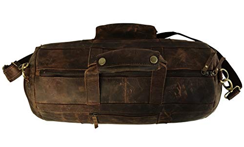 - ✅ Important !!! Size is 21" x 9" x 10.5" inches, QUALITY GENUINE LEATHER: Searching for tough, sturdy duffle bags? Real leather is a must. Handcrafted by Indian artisans, ours is made from buffalo hide that can withstand all your adventures.