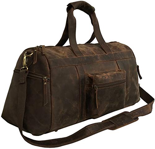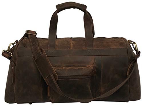 Details: ✅ QUALITY GENUINE LEATHER: Searching for tough, sturdy duffle bags? Real leather is a must. Handcrafted by Indian artisans, ours is made from buffalo hide that can withstand all your adventures. ✅ RUGGED THROUGH & THROUGH: Indiana Jones would be proud to carry this heavy-duty duffle bag featuring break-resistant YKK zippers, stout brass fittings and a thick, premium cloth lining. ✅ ROOM FOR ALL YOUR GEAR: Don't let its small size fool you - your duffle bag is designed for packing efficiency with 2 outer zip pockets, 1 inner zip pocket, 2 shoes pocket and even space for your laptop. ✅ QUICK ACCESS POCKET: Your travel bag has 4 quick access pockets. So that you can organize your cables and essentials in it, without the need to fumble around it. ✅ FITS OVERHEAD OR UNDER SEATS: This underseat, carry-on luggage bag is ideal for air travel, business trips or excursions. Fits suit, shirts, pajamas, shoes, undergarments, shaving bag and devices.