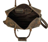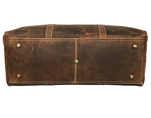 Details: * Made from Finest buffalo leather and handcrafted by experienced craftsmen, Vintage inspired design combined with the distressed leather gives a rich classy look. YKK Metal zippers for durability and smooth run, 2 side zipper pockets and 1 internal zipper pocket for small stuff. Detachable shoulder strap. Dimensions approx. : and 21 inch sizeis 21 inch by 11 inch by 8 inch and 24 inch 24" L x 13" H x 10" Depth in inches ( Approved by most Major Airlines as cabin bag ) . Metal Studs in the base protect the leather. must have accessory and a perfect gift for travelers