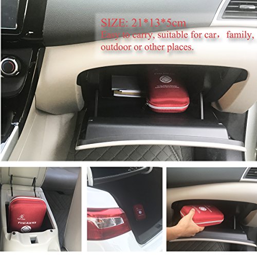 - ★DURABLE & COMPACT BAG (8.2" x 5.1" x 2"). Easy to carry, small and lightweight, yet holds all the essential emergency supplies and survival tools (220 pcs with great shelf life, refill when necessary). The first aid kit has just the right size so it fits anywhere in your car, atv, yacht, boat, jeep, bike,outdoor adventures,camping, hiking, hunting or motorcycle.