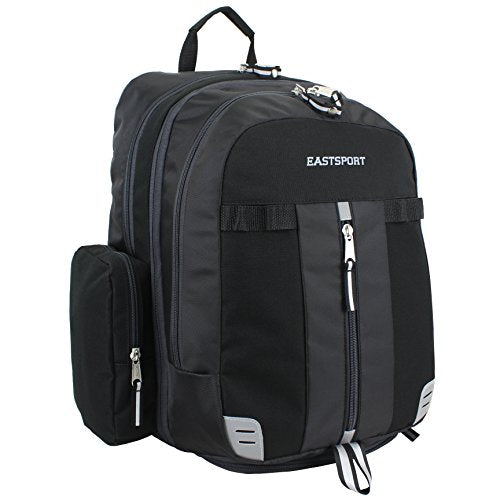 Details: Eastsport Oversized Expandable Backpack is the ultimate multi-purpose backpack with 6 separate compartments and 3 interior pockets for ultimate organization. Zip-around expandability up to 2.5" makes fitting all your essentials easier, and a 15" laptop/tablet interior secure sleeve protects your devices on the go. The base compartment with removable EasyWash bag lets you separate the smart way. SureSnap Zipper Pulls keep your belongings safe and secure, and HeatEscape Padded Mesh Back Ventilation System ensures your back will be comfortable and cool. The Eastsport Limited Lifetime Guarantee lets you rest safe knowing we stand behind the quality of our products for life.