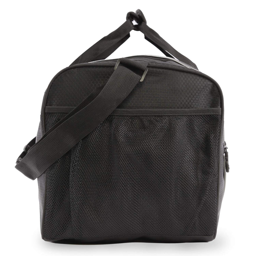 Details: Carry your gear to the gym or to training in this sleek, compact design sports duffel bag. 3 compartments provide plenty of room for training clothes, shoes, water bottles and other accessories. Exovent mesh ventilation pockets help to keep your bag from smelling of foul odors and thick padded bottom made for durability. Includes adjustable shoulder strap.